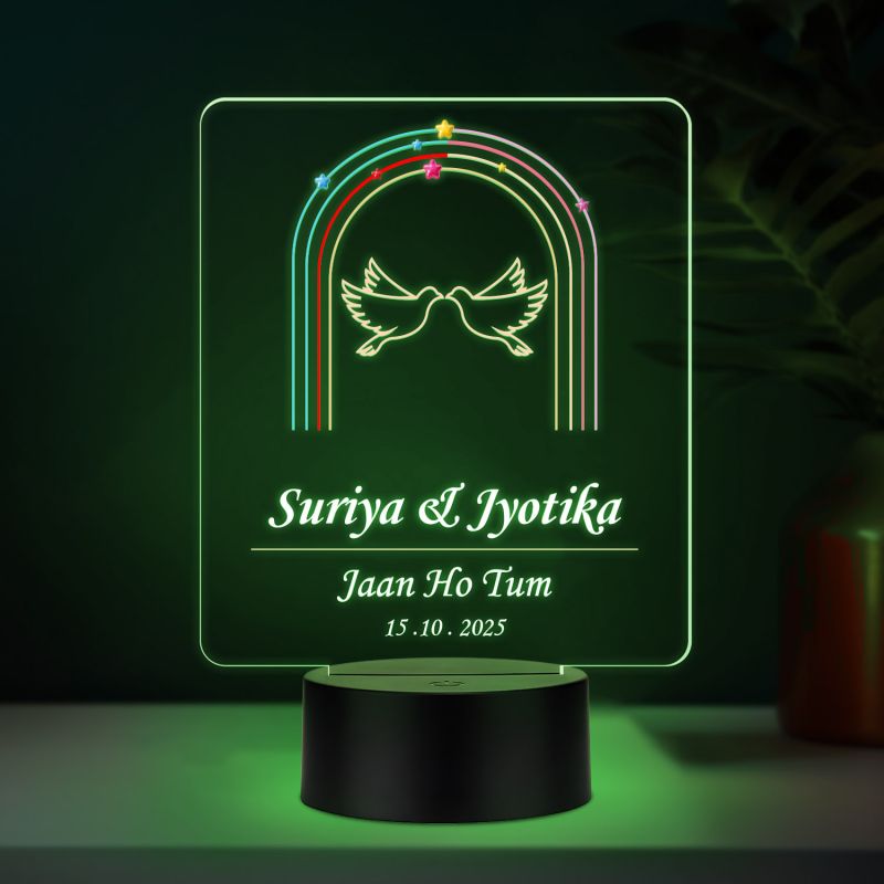 Personalized Couple Night Lamp Custom with Name & Date Bedside Table Lamp Couple Gift Anniversary, Wedding, Marriage, Valentine Day Multicolored Light (Jaan Ho Tum)