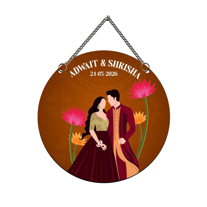 Personalized Couple Wedding Theme Wall Hanging Decoration Couple Portrait with Lotus Flowers Design Wedding, Anniversary, or Engagement Gift for Husband, Wife, & Couples