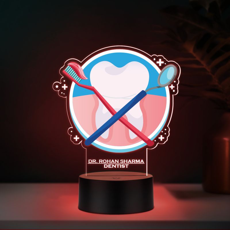 Personalized Dentist LED Night Lamp with Tooth and Dental Tools Design, Color Changing Acrylic Light with Black Base Gift for Dentist Nightlight for Dental Clinic