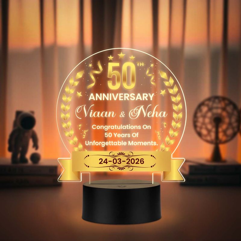- ???? Personalized 50th Anniversary Gift: Customize this LED night light to honor a golden milestone, making it a meaningful keepsake for parents, grandparents, or any couple.