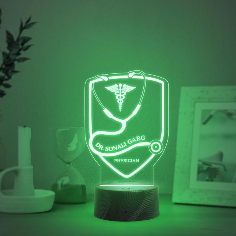 Personalized Doctor Name Plate Doctor Symbol with Stethoscope LED Lamp Thankyou Gift for Doctor Birthday Gift for Doctor Multicolored Light