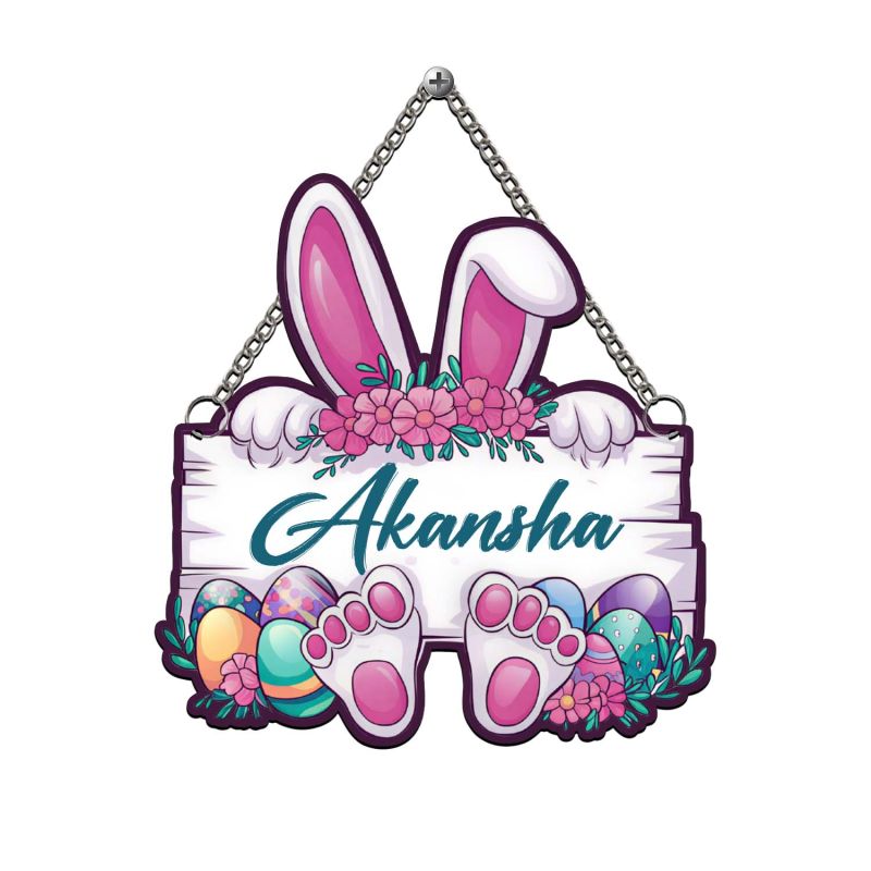 Personalized Easter Bunny Theme Wall Hanging Decoration Custom with Name Wall Art for Baby Nursery, Birthday Gift For Kids Kids Room Door & Wall Decor