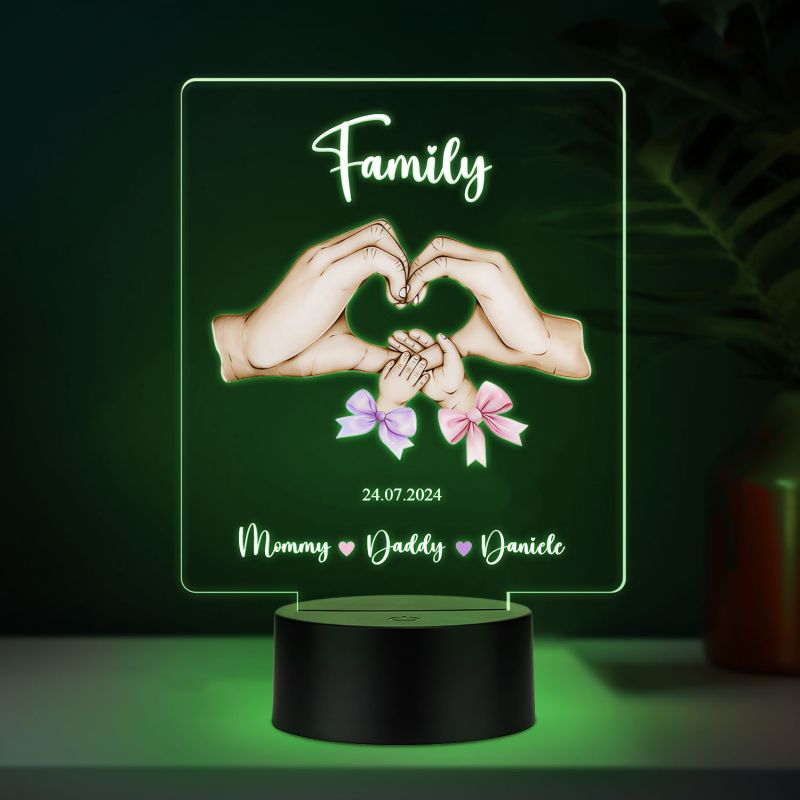 Personalized Family LED Night Light, Heart Hands Design, Customizable with Names and Date, Gift for Mom Dad Automatic Color Changing Light
