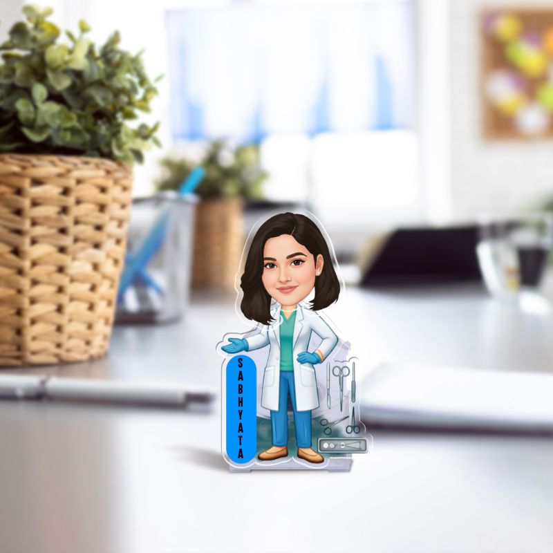 Personalized Female Doctor Caricature Tabletop Decor Gift for Physicians, Medical Professionals & Surgeon | Birthday Gift for Doctor Battery Powered Moving Head Feature