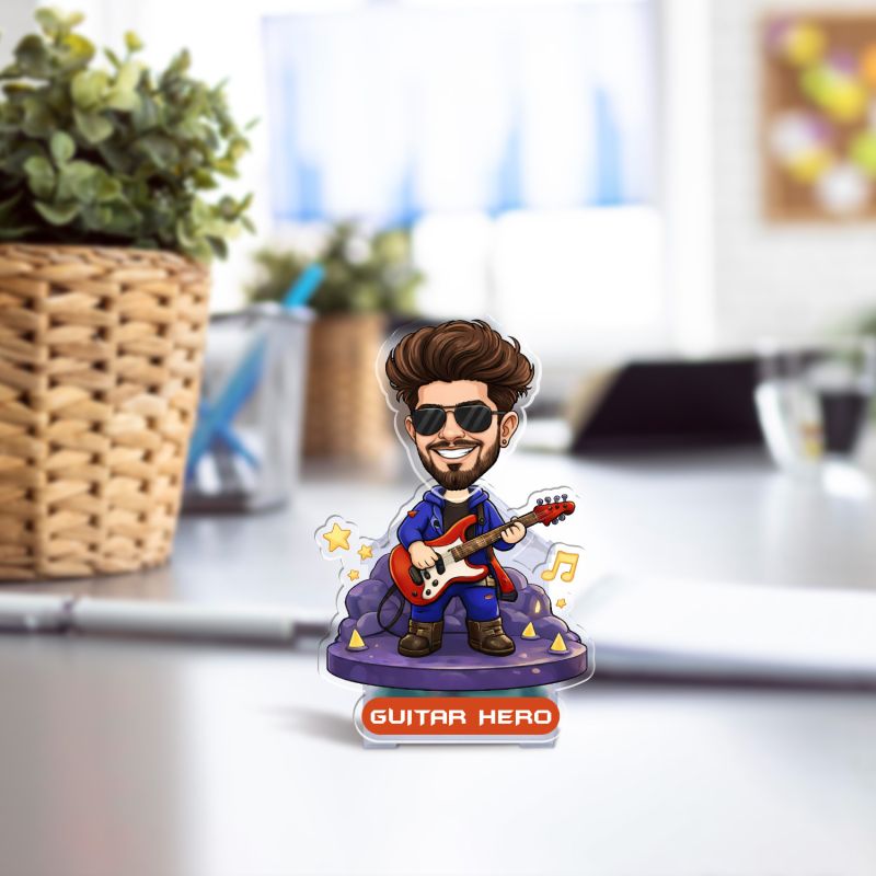 Personalized Guitar Hero Bobblehead Caricature for Home, Living Room & Bedroom Decoration, Battery Powered with Shaking Head Figure Gift for Guitar Lover & Music Lover