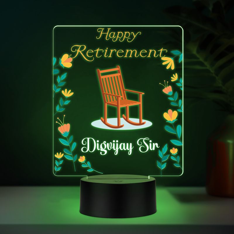 Personalized Happy Retirement LED Night Lamp with Rocking Chair Design, Color Changing Acrylic Light with Black Base Retirement Gift for Grandfather, Dad & Teacher