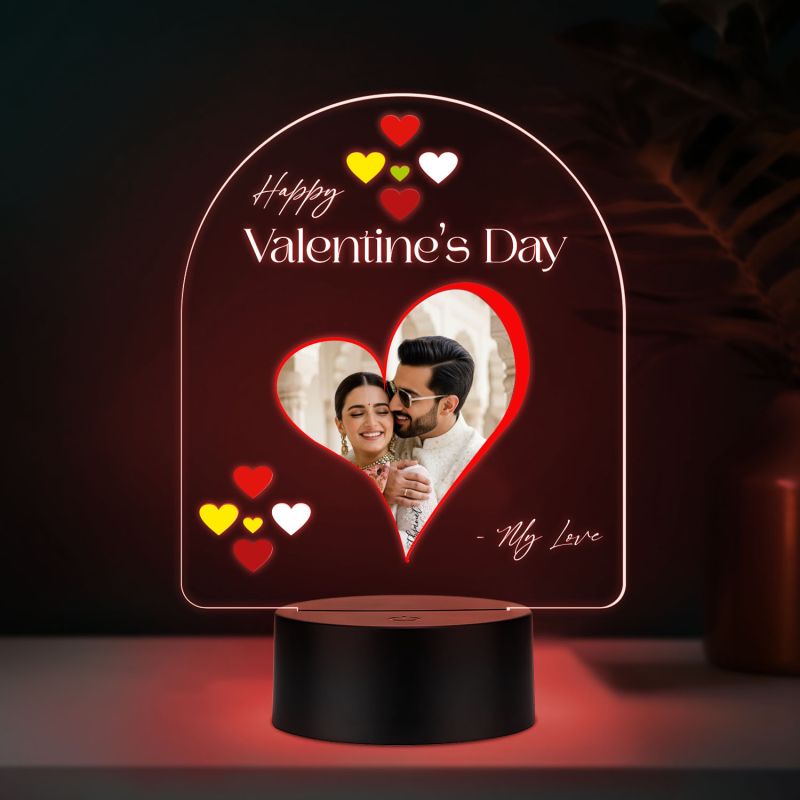 Personalized Happy Valentines Day My Love LED Night Lamp with Automatic Color Changing Light Valentines Day Gift for Boyfriend, Girlfriend, Husband Wife