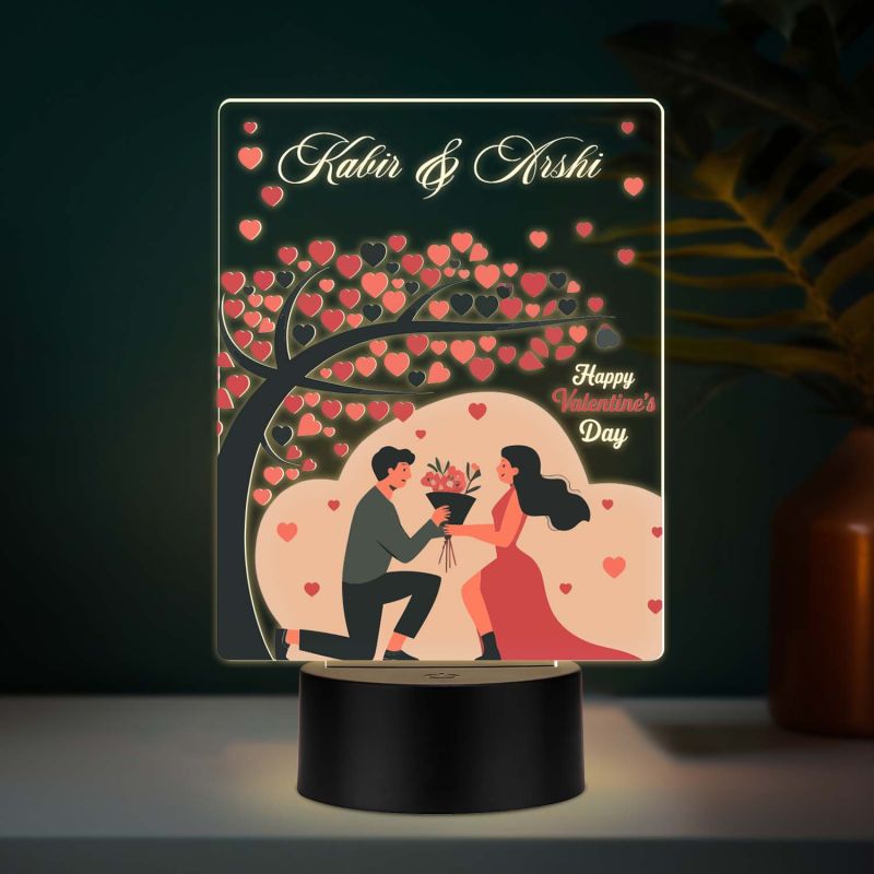 Personalized Happy Valentine's Day Theme LED Night Lamp, Couple with Heart Tree Design Valentines Day Gift for Couples Warm White Light