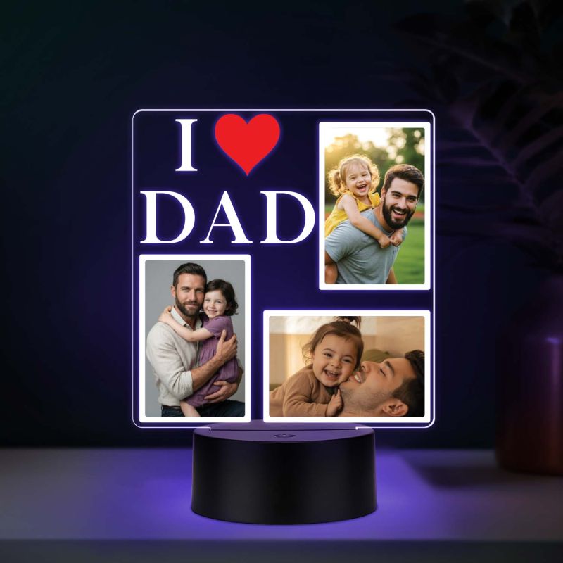 Personalized I Love Dad UV Print Photo Multicolor LED Lamp Fathers Day Gift Light