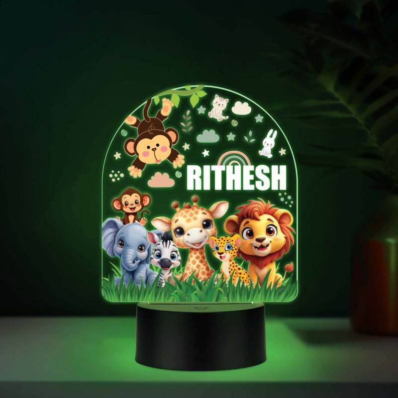 Personalized Jungle Theme UV Print 7 Color LED Night Lamp Kids Room Decor Light