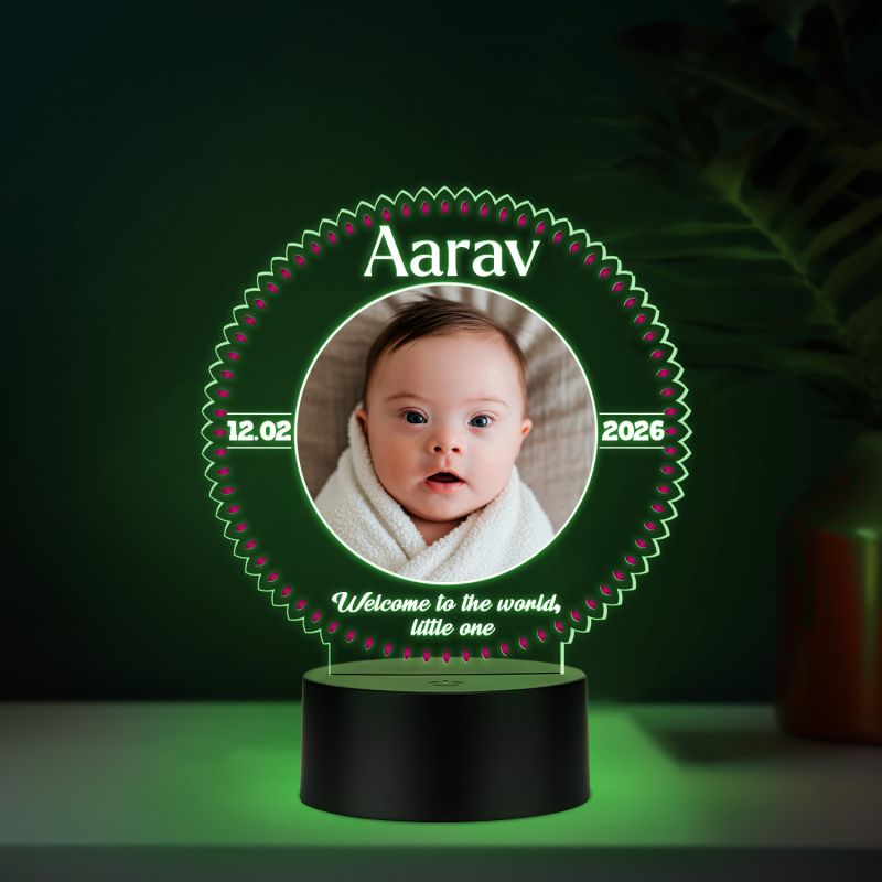 Personalized LED Night Lamp with Photo | Welcome to The World Little One Quote Engraved Color Changing Light with Black Base Gift for New Born Baby & New Parents