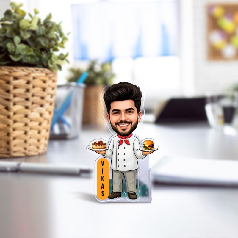 Personalized Male Chef Bobblehead Caricature Battery Operated with Moving Head Feature Gift for Chefs, Food Enthusiasts & Restaurant Openings Kitchen & Dining Table Decor