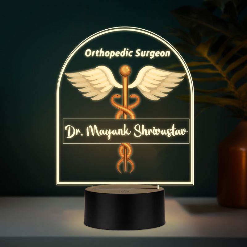 Personalized Orthopedic Surgeon LED Night Lamp with Medical Caduceus Design | Warm White Light Thankyou Gift for Doctor