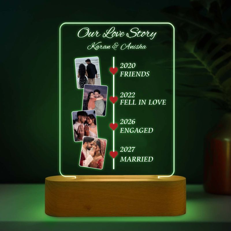 Personalized Our Love Story Couple Photo LED Lamp with Light & Wooden Stand Anniversary Gift for Husband Wife Birthday Gift Memorable Gift Item 7 Color Changing Light