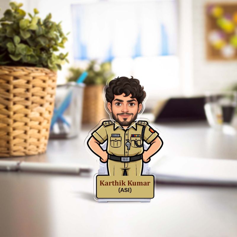 Personalized Police Officer Caricature Desk Stand with Shaking Head for Home Office & Car Dashboard Birthday Gift for Police Officer, Friends, Brother, Husband Solar Powered Moving Head