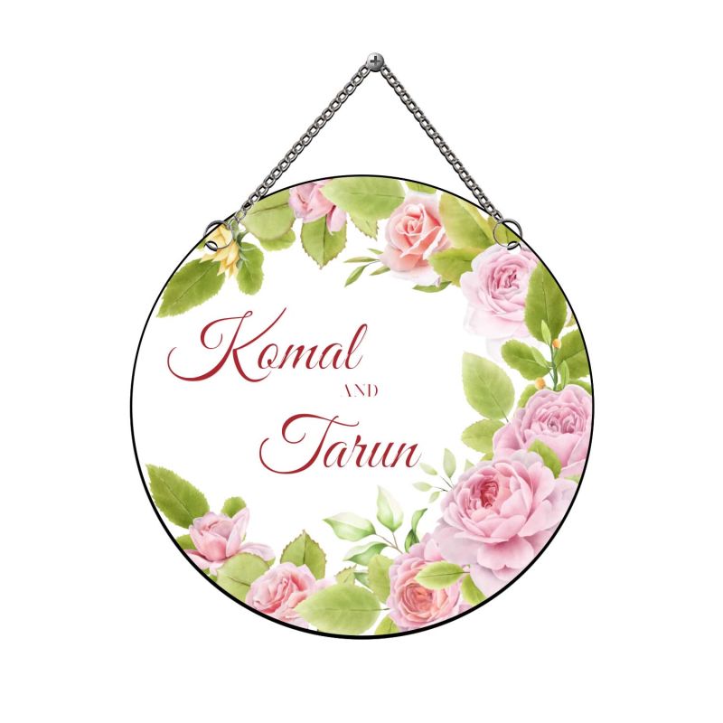 Personalized Rose Theme Couple Name Wall Hanging For Home Entrance Door Name Plate Hanging Birthday, Anniversary Gift For Couples Decorative Wall Art For Bedroom