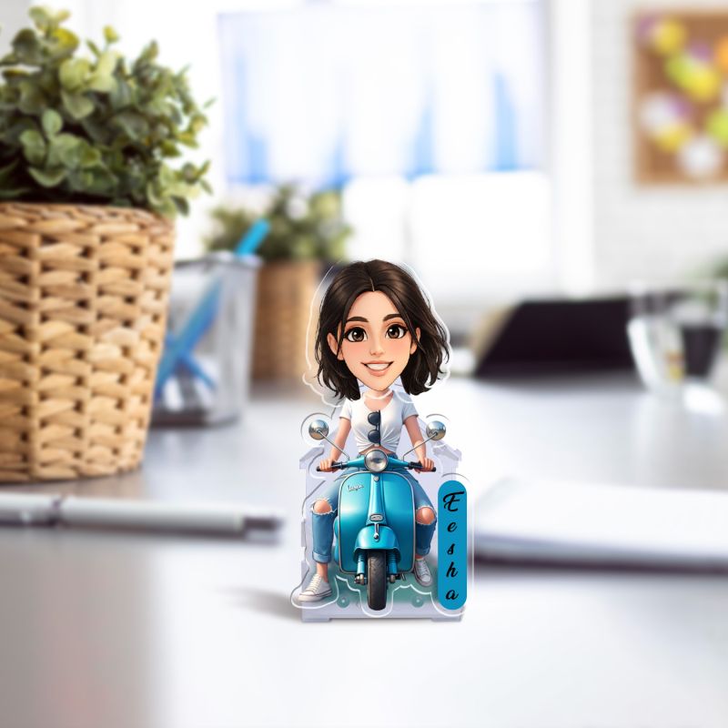Personalized Scooty Lover Girl Booblehead Caricature for Girls Battery Powered Moving Head Feature Birthday Gift for Daughter, Sister, Mom & Lady Boss Tabletop Decor