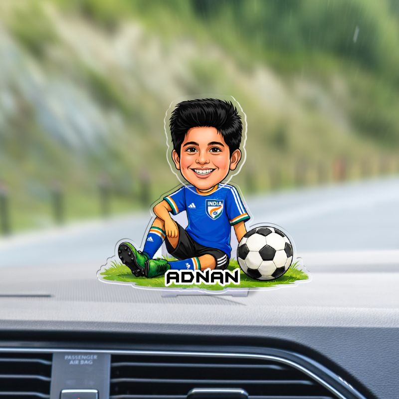 Personalized Soccer Player Bobblehead Caricature Football Theme Car Dashboard | Gift for Soccer Players, Kids & Sports Fans | Solar Powered Moving Head