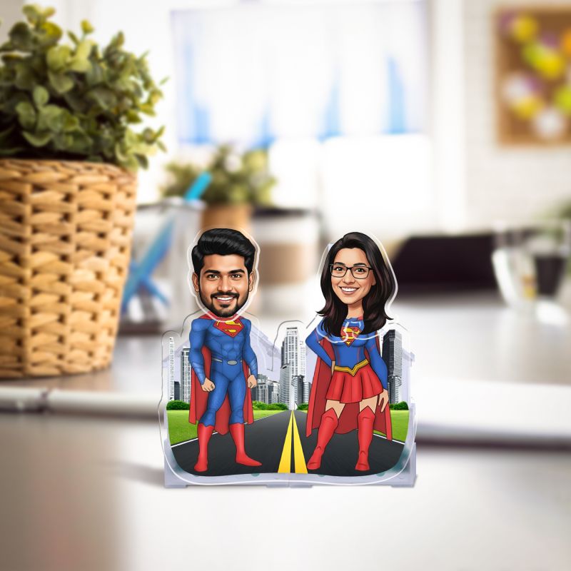 Personalized Super Man & Women Theme Bobblehead Caricature for Home Decor & Car Dashboard Solar Powered Moving Head Funny Gift for Couples