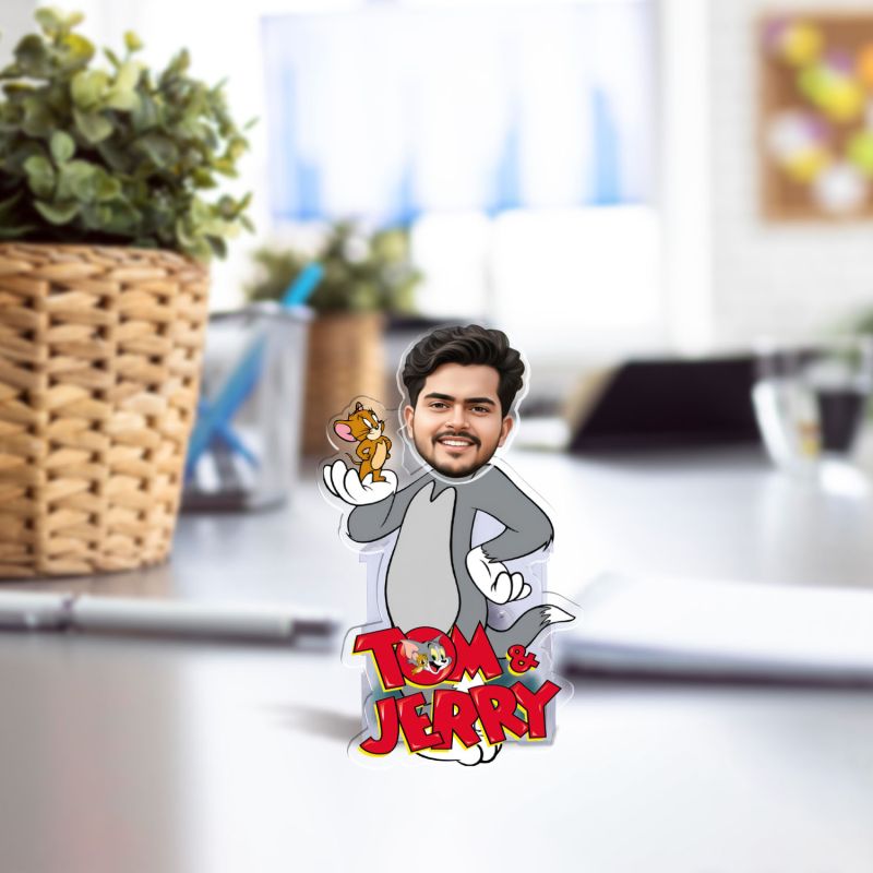 Personalized Tom & Jerry Cartoon Theme Funny Face Caricature Birthday Return Gift for Kids, Girls & Boys Solar Powered Moving Head for Car Dashboard & Table Decor
