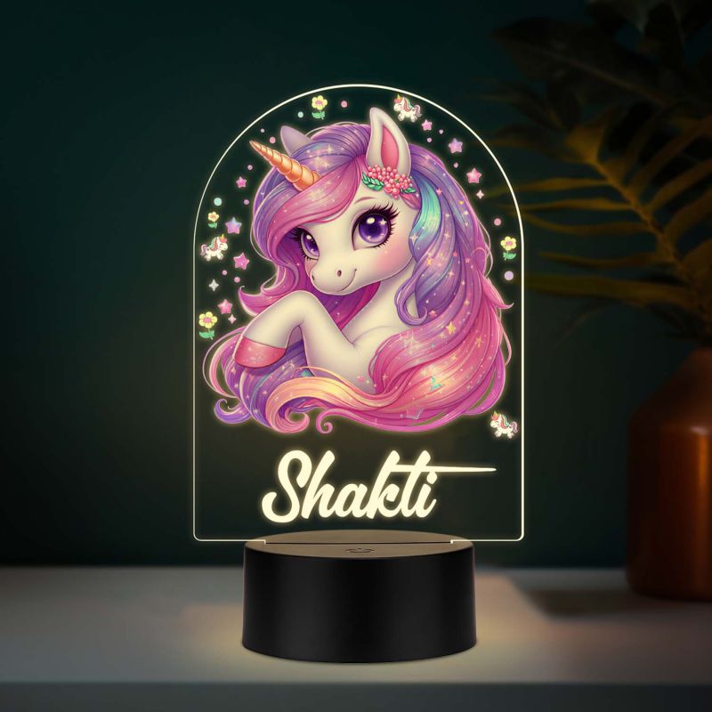 Personalized Unicorn UV Print 3D Illusion Night Light – Warm White LED Acrylic Lamp