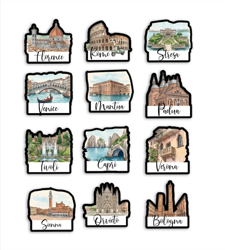 Set of 12 Italian City Magnet Wooden Countries Combo Fridge Magnet International Travel Souvenir Gift Set Kitchen Decor Fridge Decoration Country Theme Birthday Gift