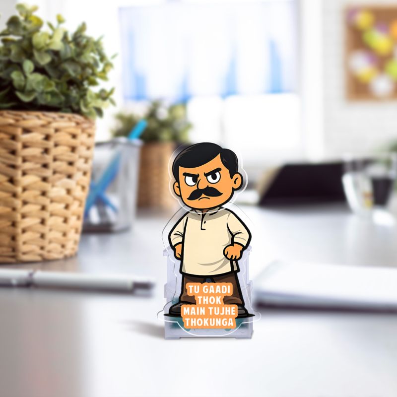 Tu Gaadi Thok Main Tujhe Thokunga Funny Cartoon Character Bobblehead Caricature with Hindi Quote, Idol for Car Dashboard & Tabletop Solar Powered Moving Head Office Desk Decor Showpiece Funny Gift