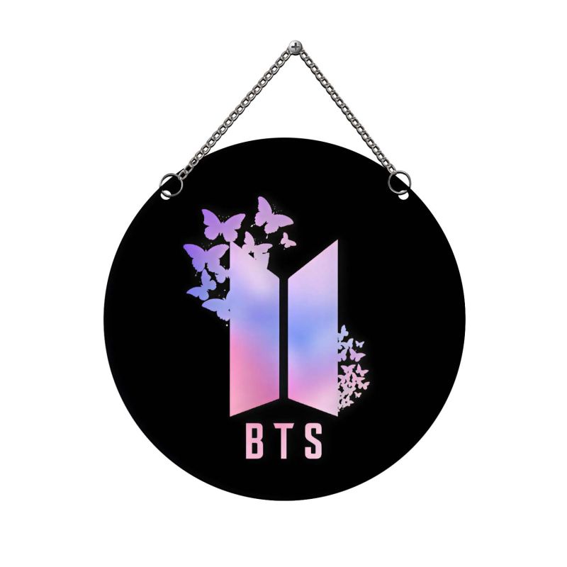 Wooden BTS Army Logo Wall Hanging with Butterfly Design K-Pop Themed Bedroom & Kids Room Decor BTS Fan Room Decoration Birthday or Party Gift